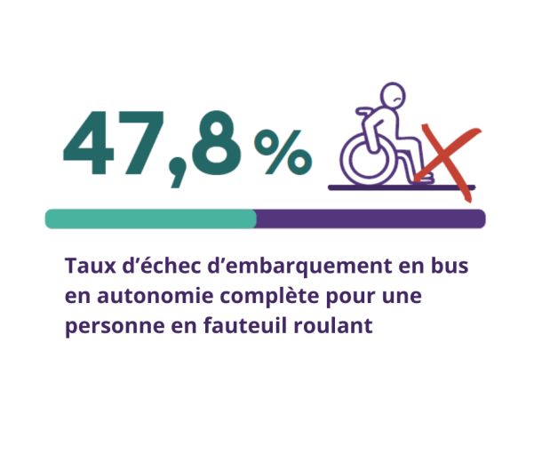 Sur 46 tentatives, l’embarquement autonome a échoué dans 47,8 % des cas. Autrement dit, presque un trajet sur deux ne permet pas à l’usager d’entrer dans le bus par ses propres moyens.