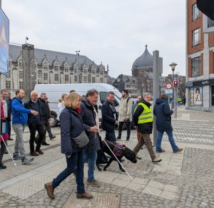Tram de Liège : l’espace public aux abords pose de sérieux problèmes de sécurité pour les personnes déficientes visuelles.