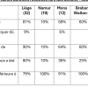 Liège : 9% - Namur : néant - Mons : 6% - BW : néant - Moyenne région wallonne : 3%